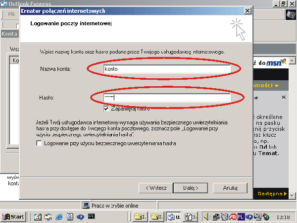 W tym oknie należy podać nazwę konta i hasło. Te informacje otrzymali Państwo razem z innymi informacjami potrzebnymi do konfiguracji od 2A Sp. z o.o.